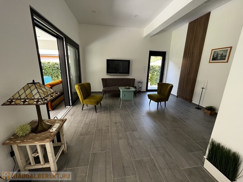Balatonföldvár nyugodt, csöndes és családias részén, 5 perc sétára a Balatontól kiadó ez a ritkán látható minőségben, 2018-ban épült, összesen 160 nm-es családi ház.