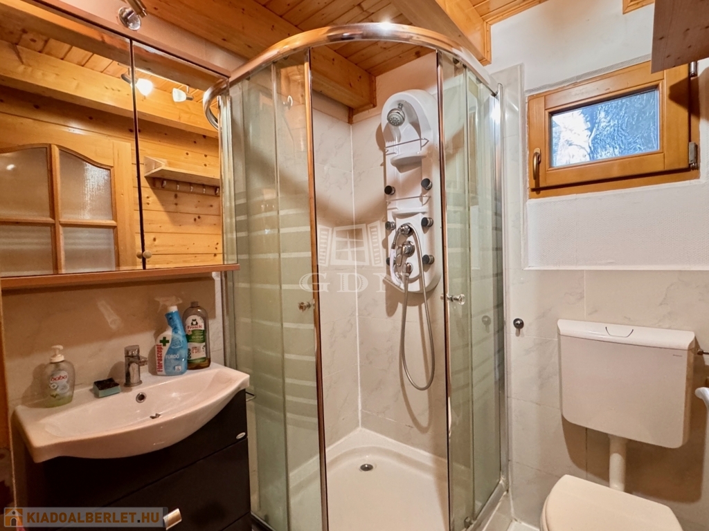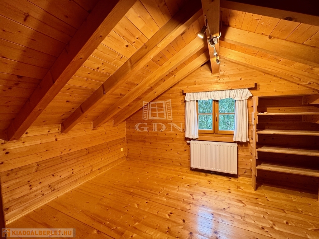 Budaörs - XI. kerület Budapest határán egy osztatlan közös lekerített telekrészen lévő, 70m2-es hasznos alapterülettel rendelkező, nappali + 2 szobás, teraszos, részben bútorozott, 2 szintes faház minimum 1 évre kiadó!