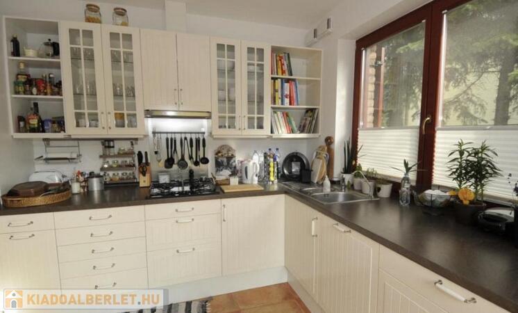 Kiadó 2026. JANUÁR 15-től Budapest II.ker. József Attila útján - Francia iskola közelében - mediterrán hangulatú, igényes, elegáns, napos, gyönyörű gondozott kerttel rendelkező 188 nm-es, 5 szobás, BÚTOROZATLAN de GÉPESÍTETT, családi ház HOSSZÚTÁVRA. Két teljes értékű lakószinten kerültek kialakításra a helyiségek.