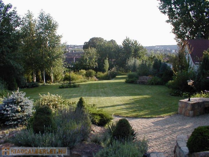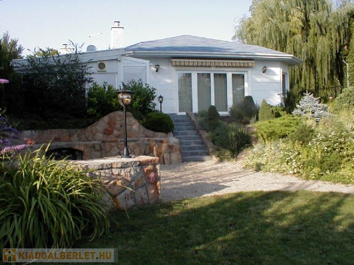 500 nöl-es parkosított kertben álló 430 m2-es egyszintes mediterrán típusú igényesen kivitelezett családi ház kiadó.