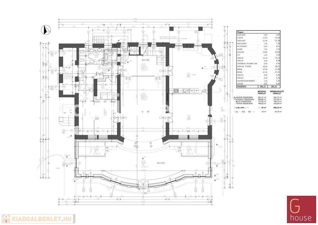 alagsor: 3 iroda, szerverszoba, nagyobb konyha, tárolók. Ezen kívül egy 40 nm-es melléképületben további 2 iroda található.