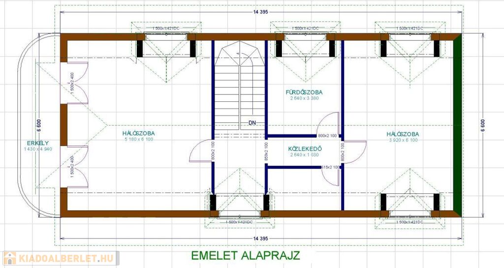 * tetőtér 70 m2: 2 hálószoba, fürdőszoba, közlekedő, lépcsőház, terasz