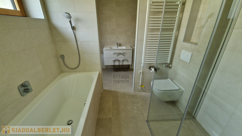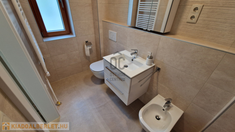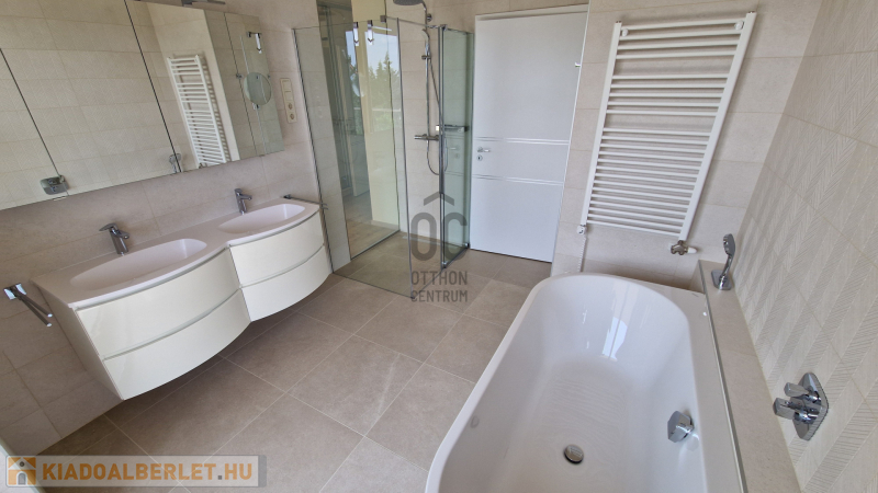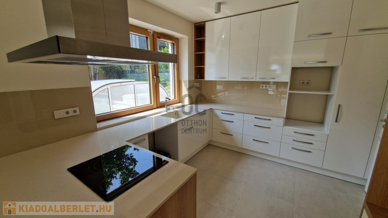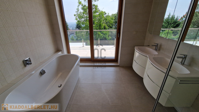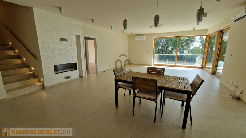 Budapest III. kerület Táborhegyen az Erdőalja úti iskolához közel kiadó egy újépítésű, luxus minőségben kivitelezett ikerházfél.