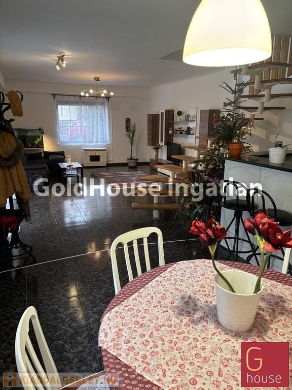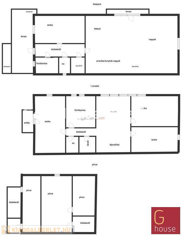 Két szintes. Alul egy 54 nm-es nappali, egy jól felszerelt amerikai konyhával, étkezővel és egy közlekedővel csatlakozó lakrész egy szobával, fürdővel. (Külön wc). A nappaliban élmény kandallós fűtőtest.