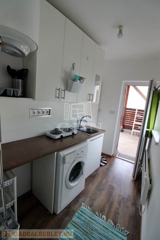 A közelben Tesco, kisebb boltok, piac, orvosi rendelő, mind megtalálható. A minigarzon egy kertes ház melléképületében található, az udvar és az autóbeálló közös, de a lakás teljesen elszeparált. A pár éve teljeskörűen felújított épület megújult kívül belül, szoba, tusoló, külön WC, és egy kis konyha kapott helyet benne. A képen látható berendezésekkel, (mosógép, hűtő, rezsó, egy személyes kinyitható ágy, komód, szekrény, könyves polc) hosszútávra, de minimum egy évre kiadó. A fűtésről modern elektromos panelek gondoskodnak, minden fogyasztás külön mérő óra alapján fizetendő. Közös költség nincs, TV és internet használat a bérleti díjon felül fizetendő.