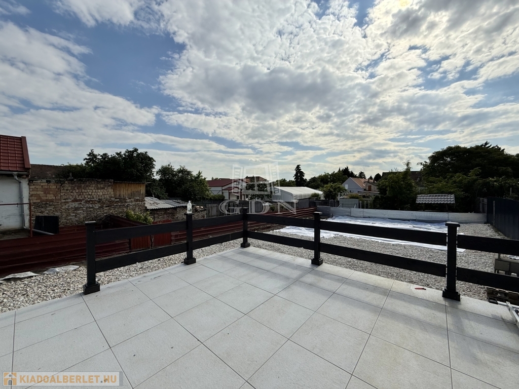 Soroksáron a Templom utcában 61.4 m2-es hasznos lakótérrel és 30m2-es terasszal rendelkező sorház kiadó, 378m2-es telekrésszel.