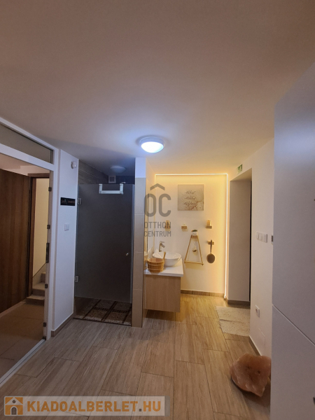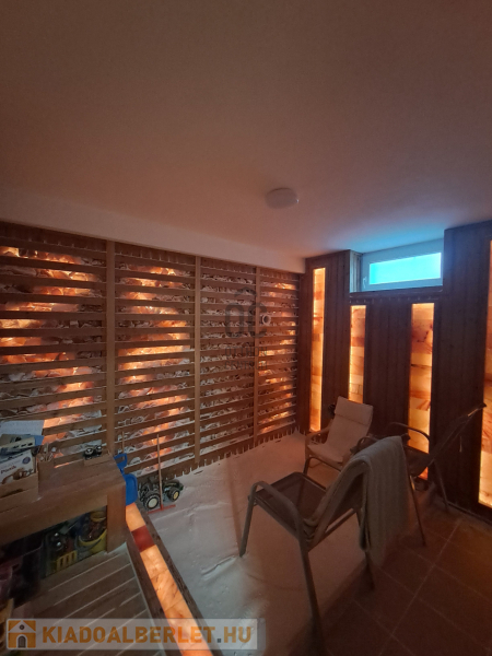 wellness részleg a pinceszinten:egy gerenátorral működtetett sóbefúvókkal felszerelt sóbarlang, egy 12 személyes újszerű állapotú finn szauna, két zuhanyzó, öltözők és két vendégwc, fűtött tepidárium ( kőpad) és pihenőrészleg.