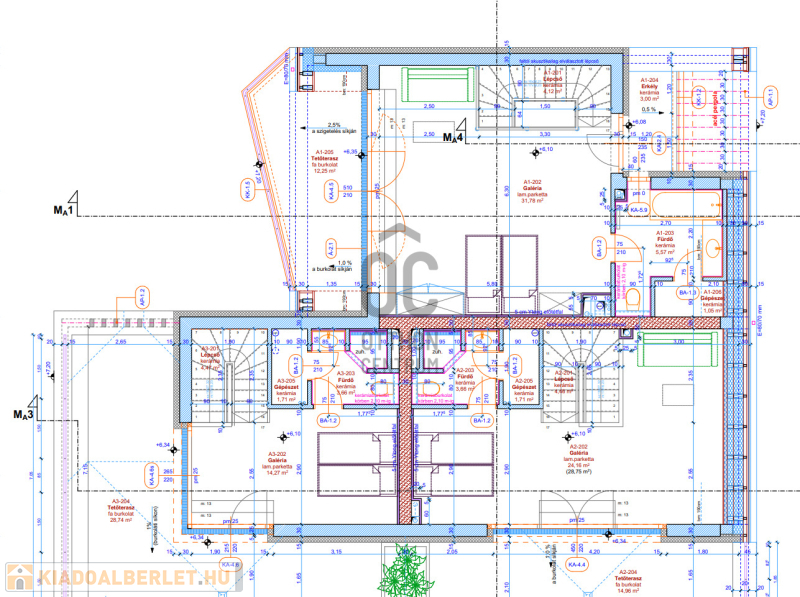- Modern gépészet: szabályozható hűtés/fűtés (fal- és padlófűtés), automata szellőztetőrendszer