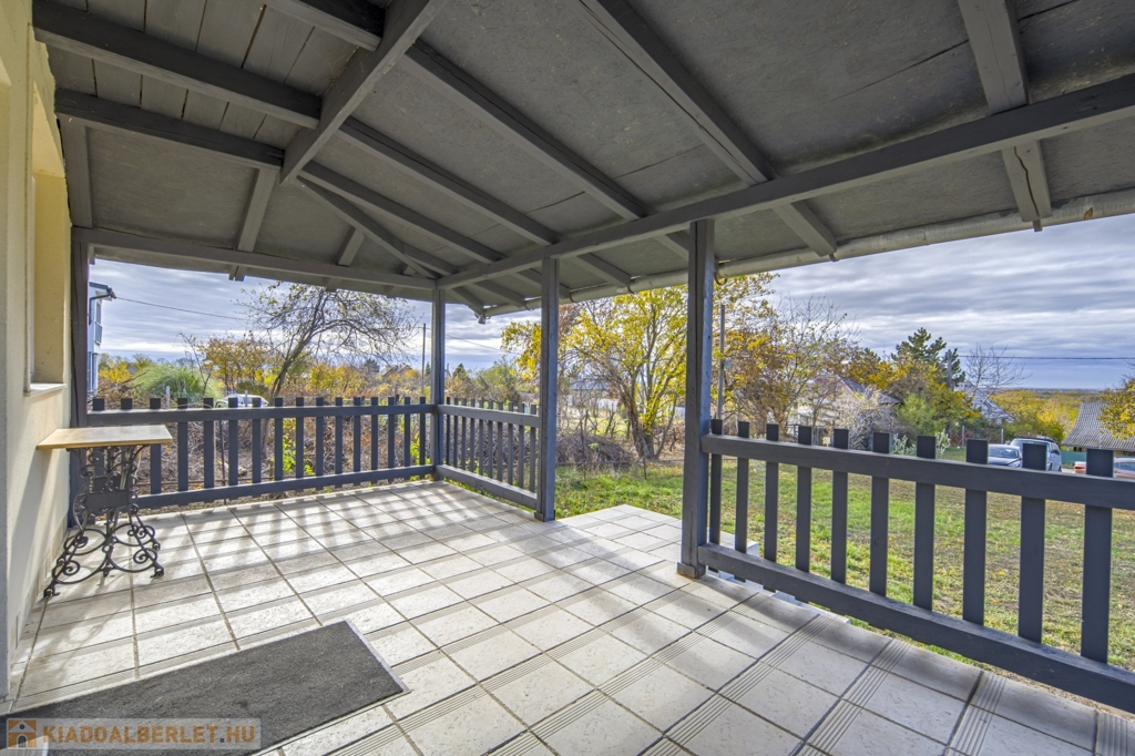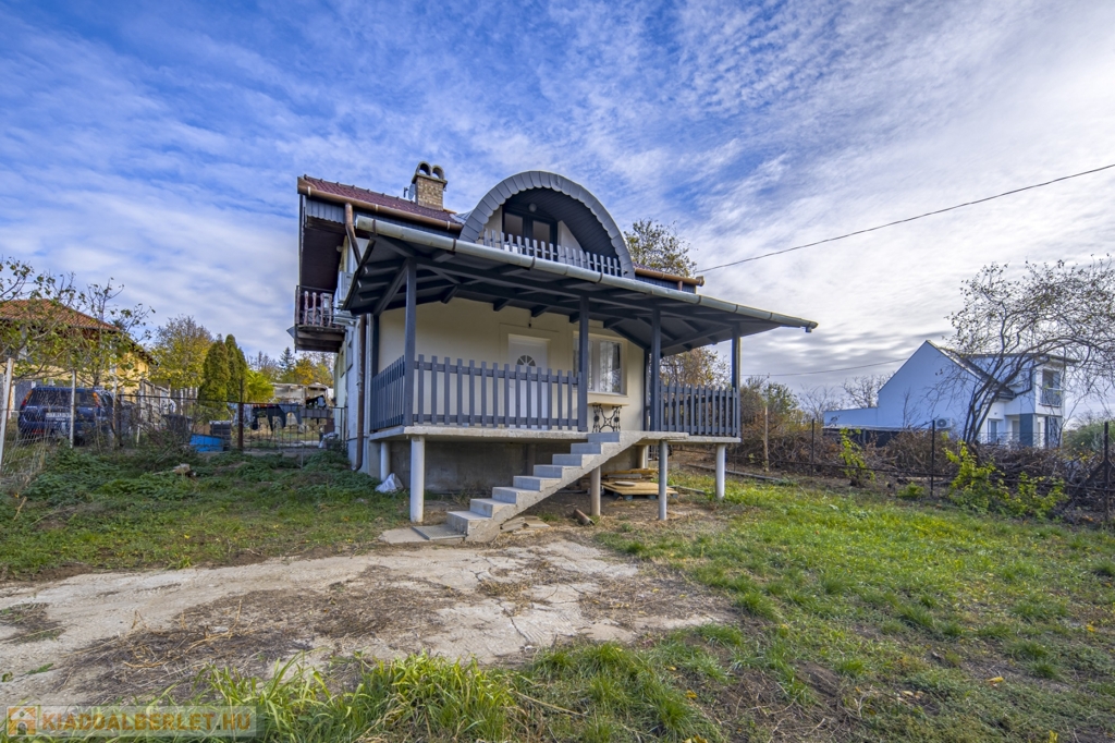 Bruttó 34 m2-es, belső két szintes, 2 szobás, klimatizált, nagy teraszos kertes ház kiadó Ecseren, a Zártkerti dűlőn.