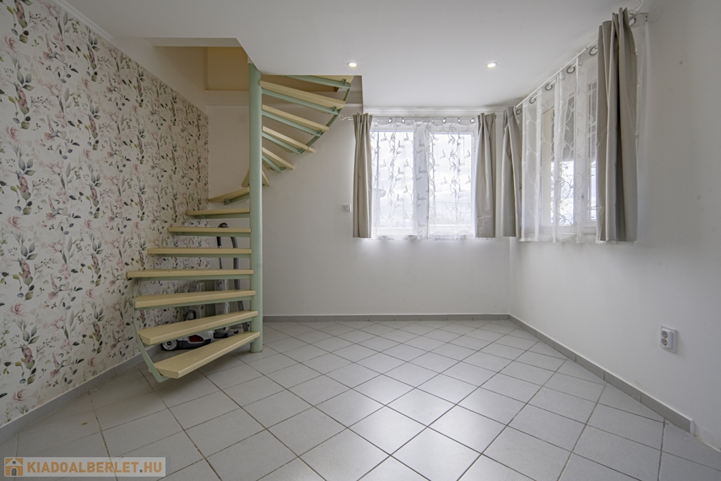Bútorozatlan, részben gépesített, maximum 2 ember részére, minimum 1 évre kiadó, 2 havi kaució + első tárgyhavi bérleti díj megfizetése mellett.