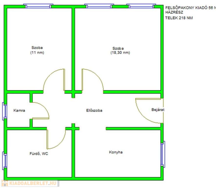 Pest megyében, Felsőpakonyon, Budapest határától mindössze 7 km-re, zöldövezeti, csendes és biztonságos környezetben kiadó egy jó állapotú, 56 nm-es, 2 szobás házrész, amely egy 218 nm-es telken helyezkedik el.