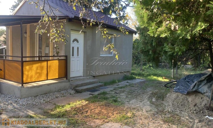 A 300 m2-es saját telken lévő, 25 m2-es, 1 szobás + 10 m2 fedett teraszos kis ház teljes berendezéssel, felszerelt konyhával, mosógéppel hosszútávra ( minimum 1 évre ) bárbeadó.