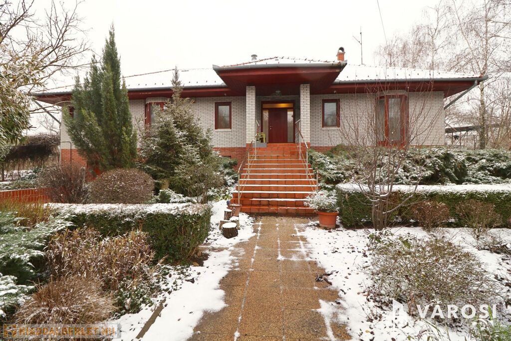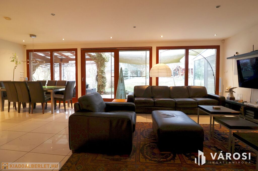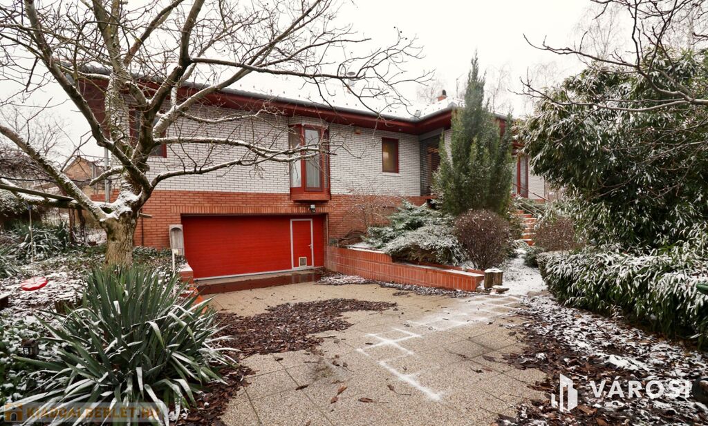 Tágas Nappali és Étkező helyiségben helyett kapott egy látvány-kandalló, innen nyílik a beépített teljesen felszerelt Konyha és a Dolgozó-szoba. Ezen a szinten lévő három hálószobához saját fürdőszoba tartozik. A Téli-kert a Dolgozó-szobából és a teraszról is megközelíthető. Az ~58,00 m2 fedett, burkolt terasz - kültéri sütögetővel - növeli a lakótér kihasználhatóságát. A kétállásos garázs ~ 44,00 m2. Központi fűtést egy Buderus Logano G 124 kazán -csökkentett káros-anyag kibocsátású, teljesen automatikus üzemű -biztosítja.