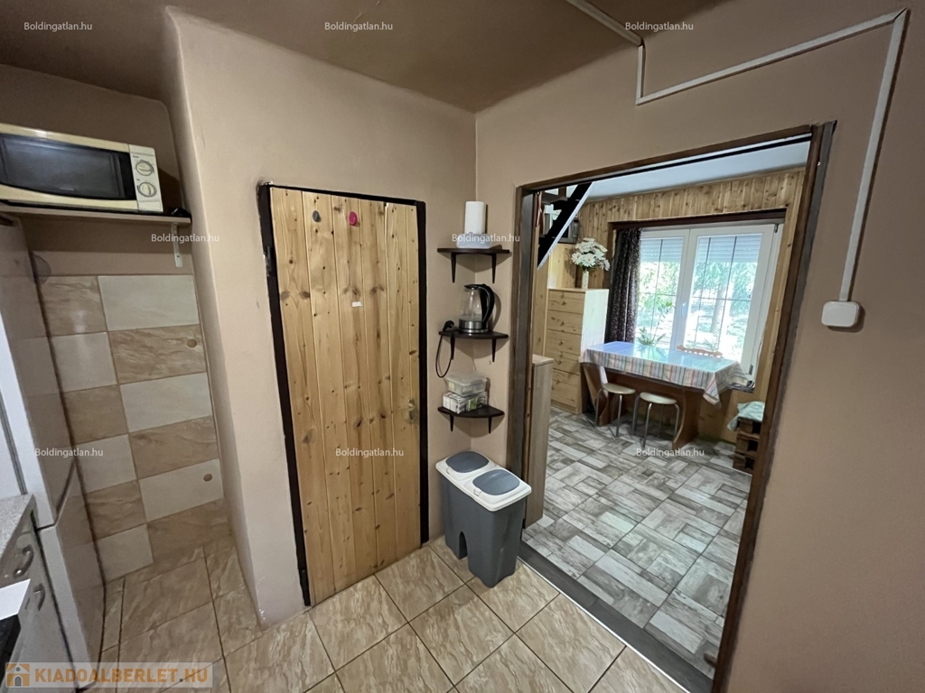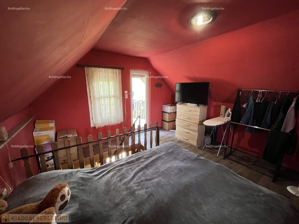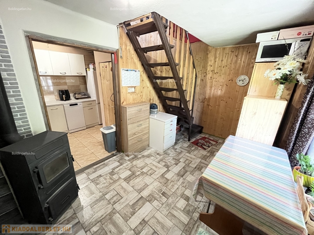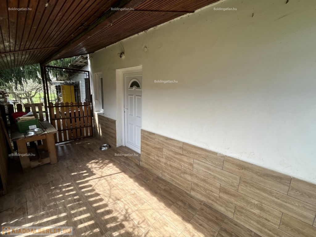 Kaposfüreden a Jutai szőlőhegyen - a vasútállomásnál található - 30 m2-es, akár télen is lakható hétvégi ház kiadó. Az épület földszintjén fedett terasz található, innen nyílik az előszoba-konyha beépített konyhabútorral és mosogatógéppel, fürdőszoba-wc mosógéppel, étkező-nappali, valamint a tetőtérben egy hálószoba került kialakításra. Az épületben a nyílászárók műanyagra lettek kicserélve, a fűtése a nappaliban lévő kandallóval megoldott, a meleg vizet villanybojler biztosítja. A kerítéssel körbekerített udvarban található még tároló, továbbá számos gyümölcsfa is van. Telek: 949 m2