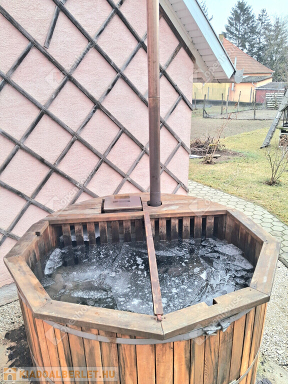 Belülről tágas, melegséget nyújtó helységek fogadnak minket, ahol remekül lehet nagyobb társaságot is fogadni, vagy akár kettesben nézni a cserépkályhát. Állandó fűtése gázzal megoldott.. Kettő szoba különálló fürdőszoba káddal ,zuhannyal felszerelt. A konyha egybe lett kötve az étkezővel, illetve szabad átjárás biztosított a társalgó részhez is. Mellette kamra kapott helyet. A kertről nem érdemes mit írni, a képek és a valóság magáért beszél. A terasz és a mellette lévő fával fűtött dézsa fürdő 675 négyzetméter üde zöldterület remek kikapcsolódásra alkalmas.A kert rendbetétele biztosított.