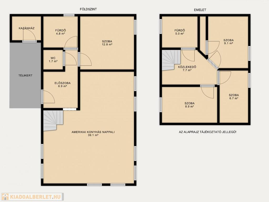 A 107 m²-es, kétszintes ház praktikus és élhető kialakítású, minden helyiség világos, jól berendezhető, és kellemes térérzetet nyújt.