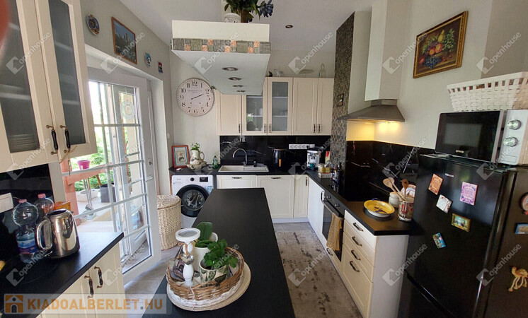 A lakás bútorozott és gépesített – beépített konyhabútor, mosogatógép, mosógép, sütő, főzőlap és fürdőszobabútor is a bérleti díj részét képezi.