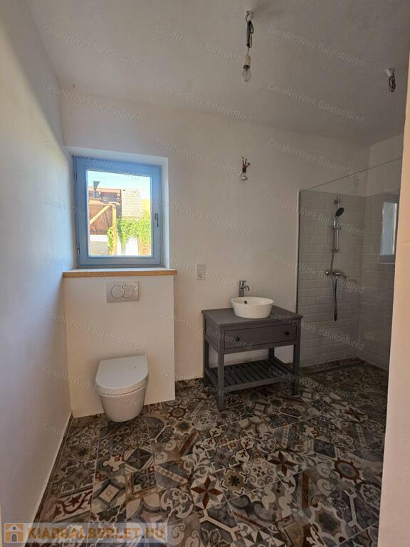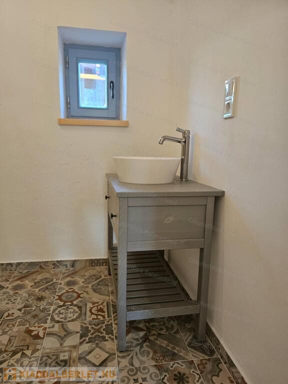 45 m²-es vendégház: A szintén frissen felújított, kétszintes vendégház ideális bisztró vagy más vállalkozás üzemeltetésére. Az elmúlt két évben sikeresen működött bisztróként, falusi pub-ként.