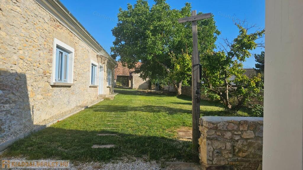 101 m²-es főépület: Ez a frissen felújított, egyszintes lakóház két hálószobával, étkezővel, konyhával és mellékhelyiségekkel rendelkezik. Az épülethez egy hangulatos boltíves pince is tartozik.