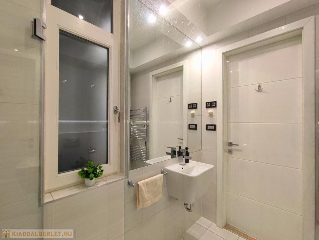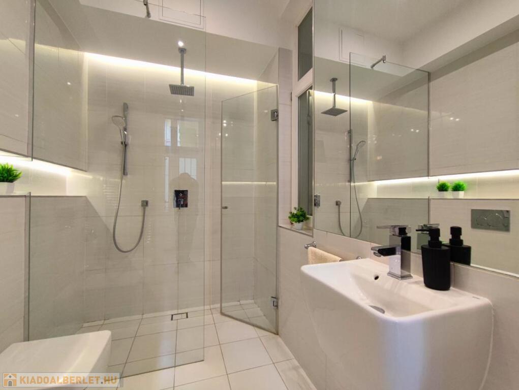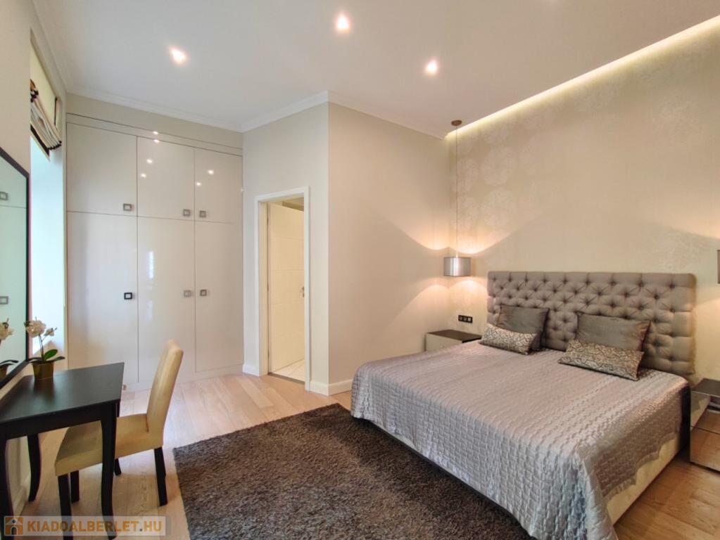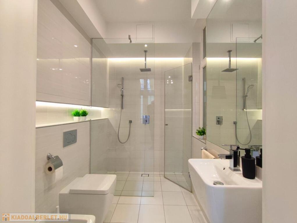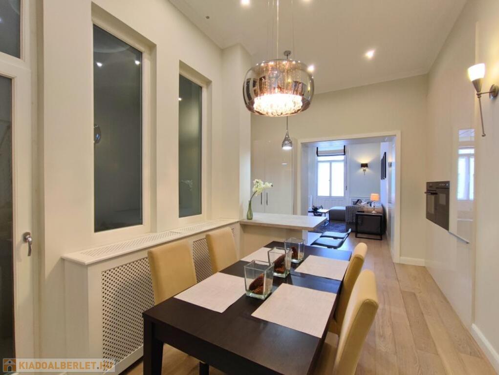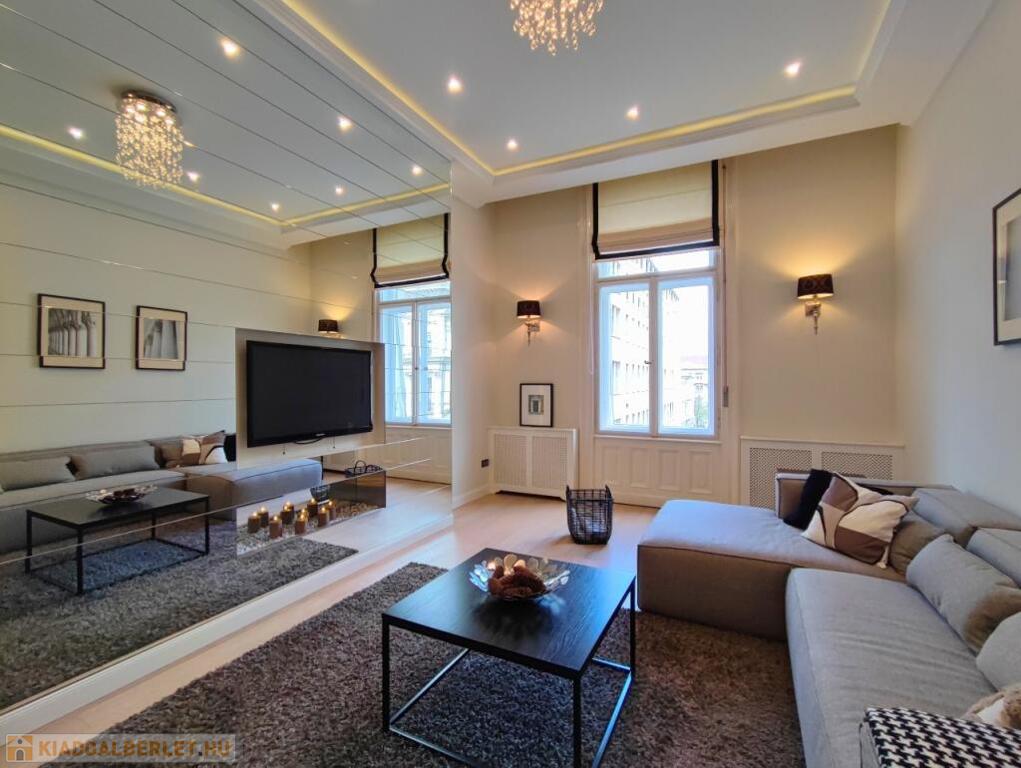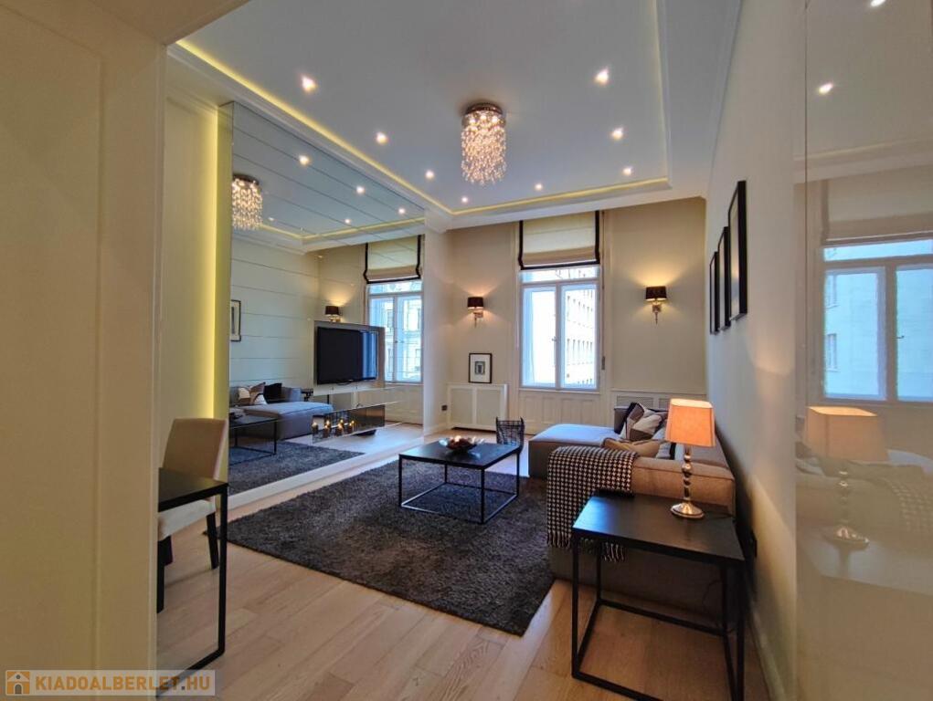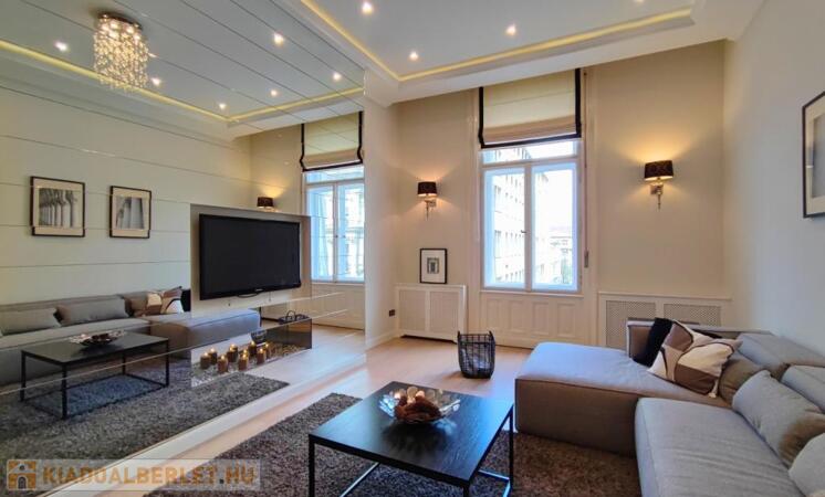 Kiadó Budapest, V.ker. Aulich utcában - a Szabadság tér közelében - rendezett liftes ház 3. emeletén egy 80 nm-es, 2 hálószobás, LÉGKONDICIONÁLT, RIASZTÓS, lakberendező által berendezett, gépesített, VILÁGOS lakás.
