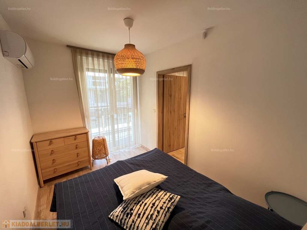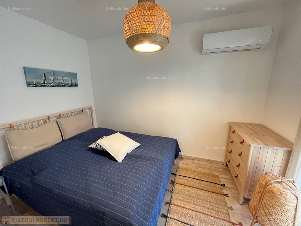 2026.05.31-IG!!! Balatonlellén a központ közelében, - a parttól nem messze - rendezett társasház 1. emeletén található, 48 m2-es - igényesen kialakított és berendezett - modern lakás kiadó. A lakásban előszoba-étkező-nappali, 1 szoba, fürdőszoba-wc helyiségek találhatóak, illetve a nappaliból kilépve nagy terasz is van. A fűtése légkondicionálokkal megoldott, továbbá riasztó is van felszerelve - a lakáshoz tartozik 1 db személyautó részére beállóhely is. A tulajdonos a lakást legfeljebb 2 felnőtt személy részére kívánja bérbe adni, a dohányzás és a kisállat tartása nem engedélyezett. Bérleti díj: 150.000.- Ft/hó + rezsi + 2 havi kaució
