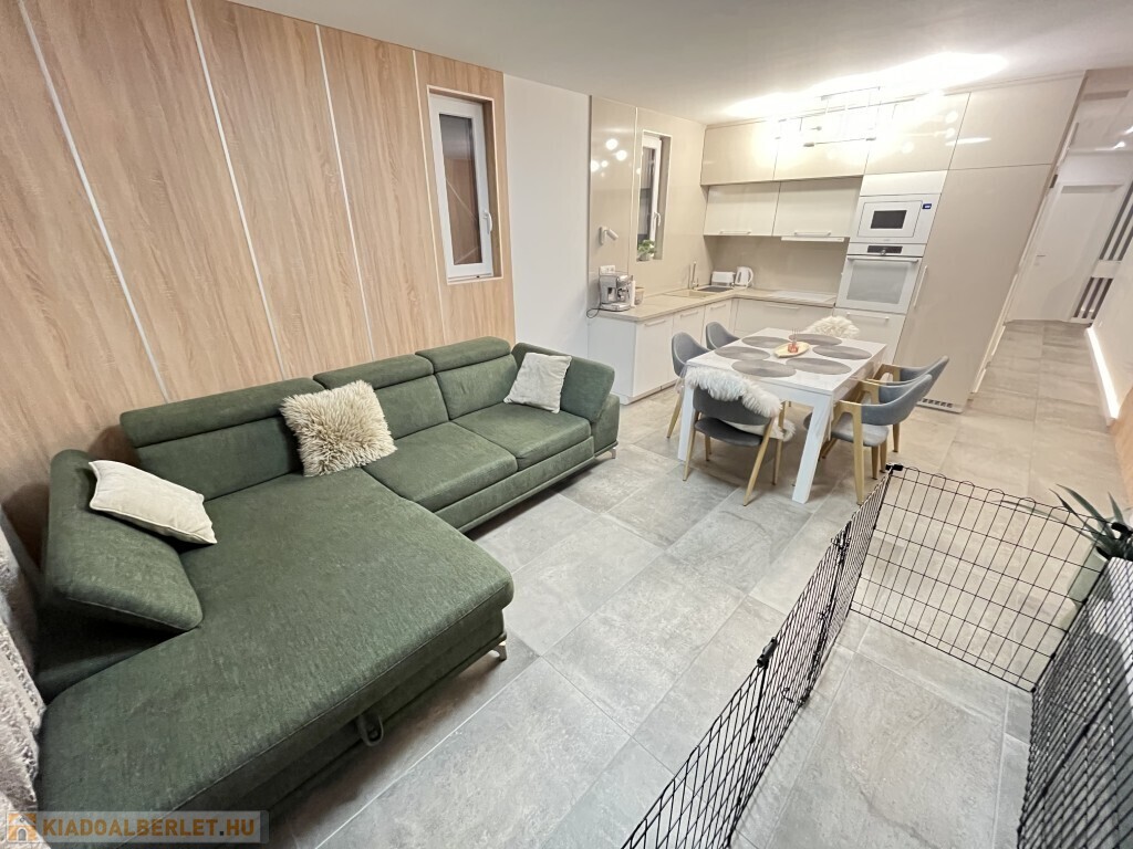 Balatonlellén a központ közelében, - a parttól nem messze - rendezett társasház 1. emeletén található, 59 m2-es - igényesen kialakított és berendezett - modern lakás hosszú távra kiadó. A lakásban előszoba-étkező-konyha-nappali, 1 szoba fürdőszobával (zuhanyzó-mosdó-wc), 1 félszoba, fürdőszoba-zuhanyzó-wc helyiségek találhatóak, illetve a nappaliból és mindkettő szobából kilépve erkély is van. A lakás ideális hőmérsékletéről télen padlófűtés nyáron mennyezethűtés gondoskodik, a meleg víz villanybojlerrel megoldott, továbbá a korszerű műanyag nyílászárók szúnyoghálóval és elektromos redőnnyel vannak felszerelve, illetve riasztó is van. A lakáshoz tartozik 1 db személyautó részére beállóhely is, illetve dupla tároló. A tulajdonos a lakást legfeljebb 2 felnőtt és 1 gyermek részére kívánja bérbe adni, a dohányzás nem engedélyezett, kis állat tartása megbeszélés alapján lehet. Energetikai besorolás: C