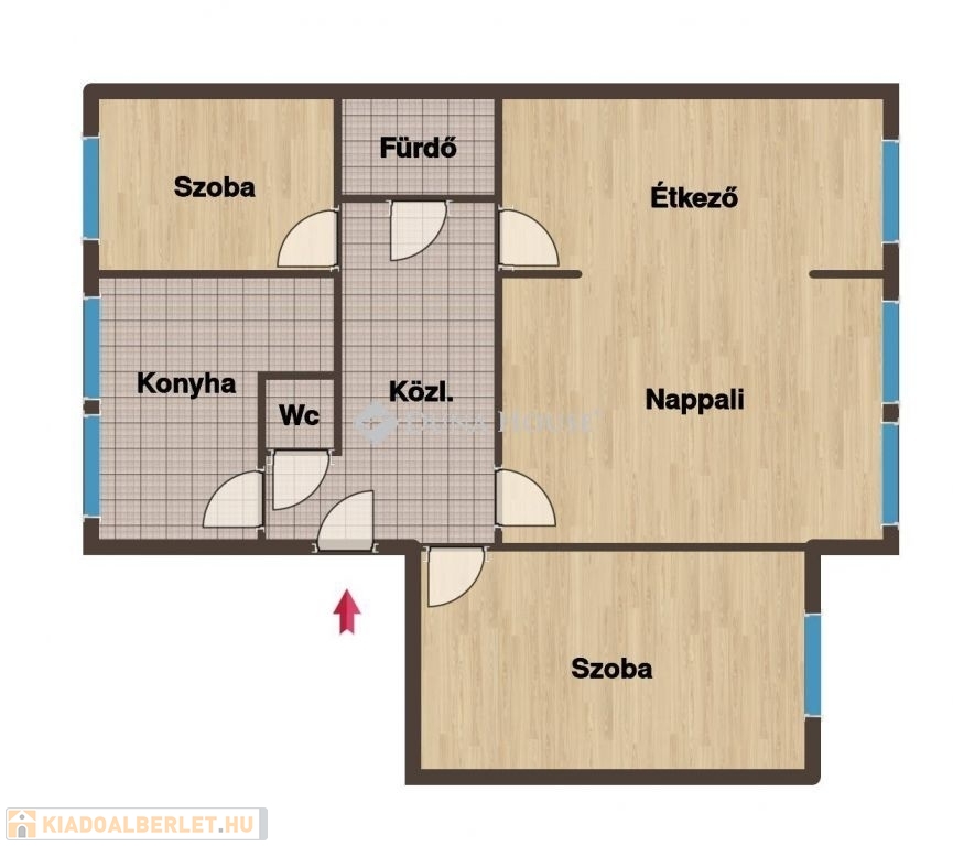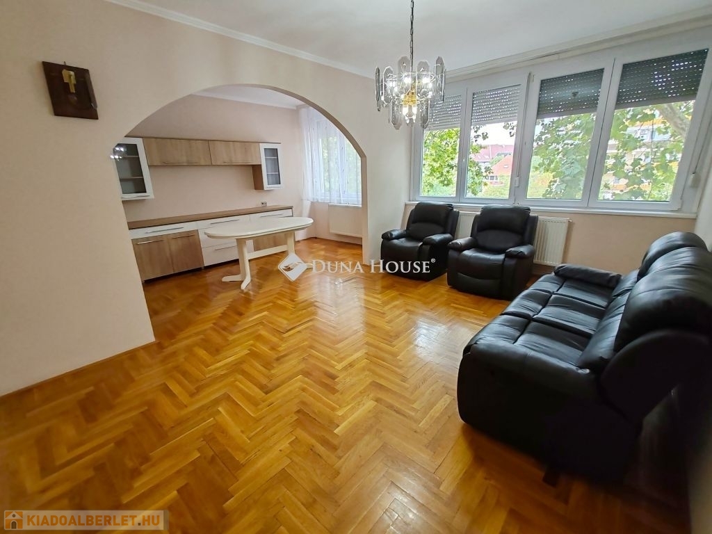 Békéscsaba belvárosában, a Szökőkútnál KIADÓ egy 2. emeleti, 76 nm-es, nappali + 2 szobás, egyedi fűtéses, részben bútorozott lakás.