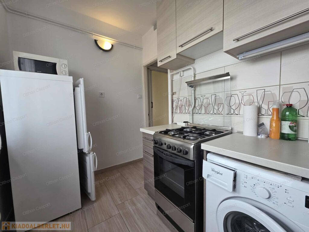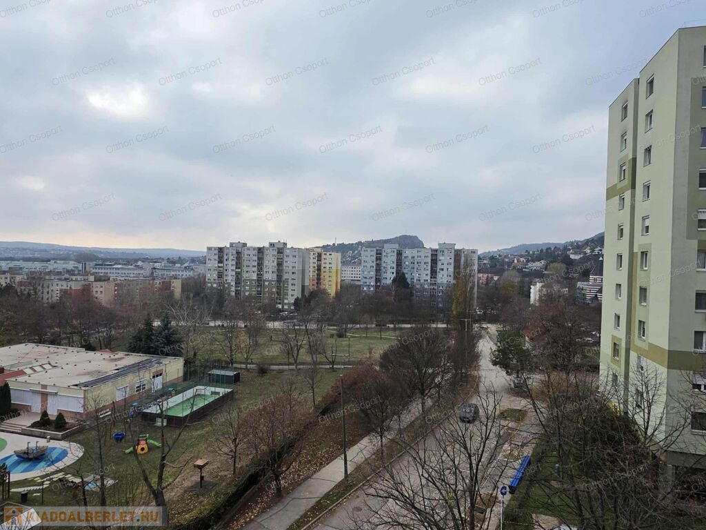 Budaörs központjában kiadó egy 5.emeleti, 54 négyzetméteres, 3 szobás, gépesített és bútorozott lakás.