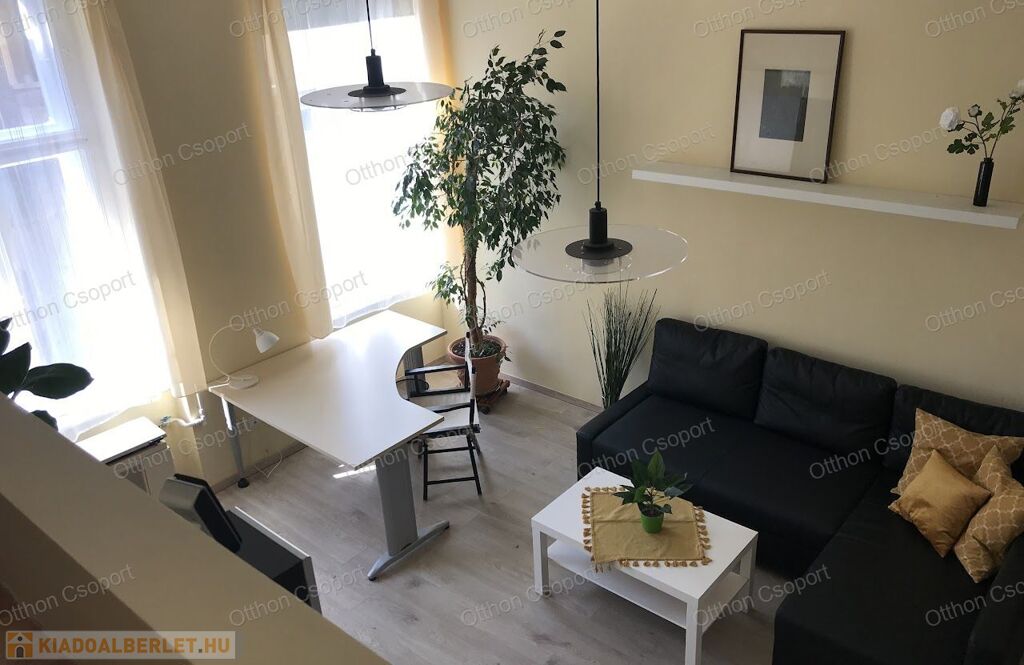 Kiadó a Mammut bevásárlóközponttal szemben egy 4.emeleti (lift van), 40 négyzetméteres, 1 szobás, teljesen felújított, gépesített és bútorozott, galériás lakás.