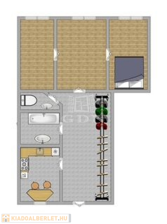 Három külön bejáratú szoba kínál kényelmes lakhatási lehetőséget akár családoknak, akár egyedülállóknak,a lakás bútorozatlan, gépesített.