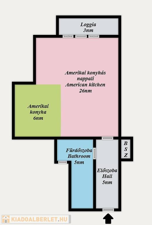 • 1 amerikai konyhás nappali