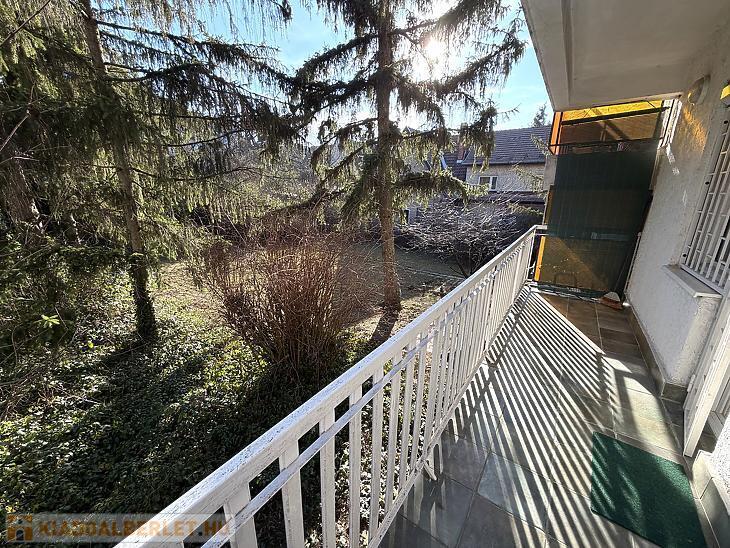 Zöldmálon zsákutcában, erdő szomszédságában kiadó egy 9 lakásos társasházban egy 1,5 szobás, erkélyes, D-i és K-i fekvésű, jó állapotú, magasföldszinti lakás. A lakás teljesen bútorozott és gépesített. Fűtéséről cirkó gondoskodik. A lakáshoz kijelölt udvari gépkocsibeálló tartozik.