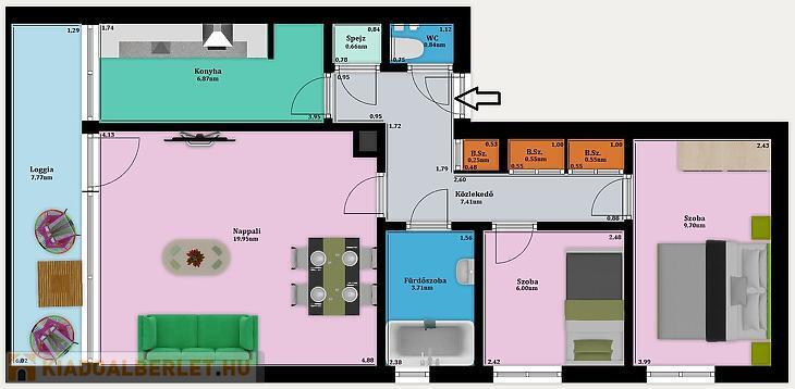 Kiadóvá vált 1970-es években épült társasházban egy I. emeleti nappali + 2 hálószobás lakás. A lakás DNY-i és DK-i fekvésének köszönhetően napos, világos, kiváló állapotban van és tartozik hozzá egy 8nm-es erkély. A lakás maximum 3 fő számára kiadó. 2 havi kaució és egy havi bérleti díj kifizetése ellenében azonnal bérbe vehető. Kisállat tartása nem megengedett. Opcionálisan bérelhető garázs is +25E/hó-ért.