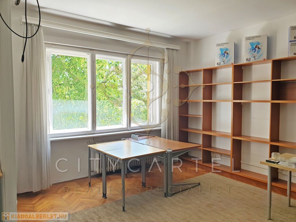 A II. kerületben, a Budagyöngye bevásárlóközpont szomszédságában, egy klasszikus ház első emeletén kiadó egy 90 nm-es, 2,5 szoba + hallos, nagyon világos, élhető terekkel, nagy belmagassággal bíró, jó állapotú lakás, 4 nm-es, belső kertre néző erkéllyel. A lakás elrendezése: 2 nagy, egybenyitott szoba, 25 és 20 nm-es, egy 12 nm-es félszoba, egy 18 nm-es hall, ablakos konyha, jó méretű ablakos kamra, kádas fürdőszoba wc-vel, vendég toalett, erkély. A lakás fűtése házközponti, a közös költség 22.000 Ft/hó. A belmagasság 3 méter, a tájolás K-i. Korábban irodaként használták, irodabútorokkal berendezett, amik hasonló célú hasznosítás esetén maradhatnak az ingatlanban. A környék kiváló, a 17 lakásos társasházról házmester gondoskodik. Az ingatlan azonnal költözhető. Vállalkozásnak, irodának, vagy családi otthonnak egyaránt megfelelő az ingatlan.