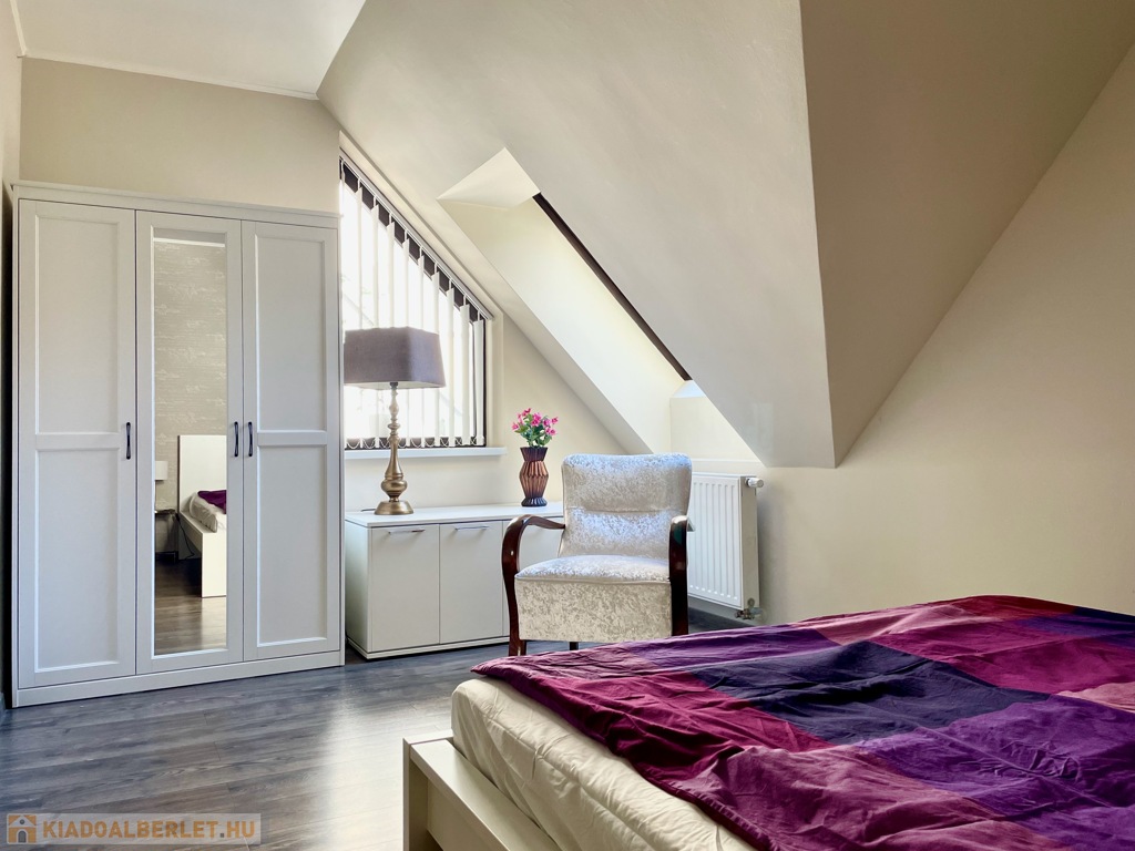 Kiadó egy egyedi hangulatú, kétszintes, 130 m²-es luxuslakás a II. kerület Erőd utcában, egy 2014-ben emelet-ráépítéssel épült, modern és teljesen felújított házban.
