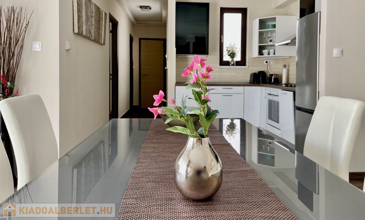 2 hálószoba, 2 fürdőszoba, amerikai konyhás nappali