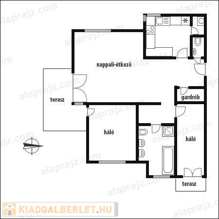 A lakás nappaliból és két külön hálószobából áll, teljesen bútorozott és gépesített. Különlegessége a két napfényes terasz (összesen 13 m²), amelyek a dél-nyugati fekvésnek köszönhetően egész nap világosak. A kényelmet légkondicionáló, gázkazános fűtés, valamint teremgarázs-beálló biztosítja.