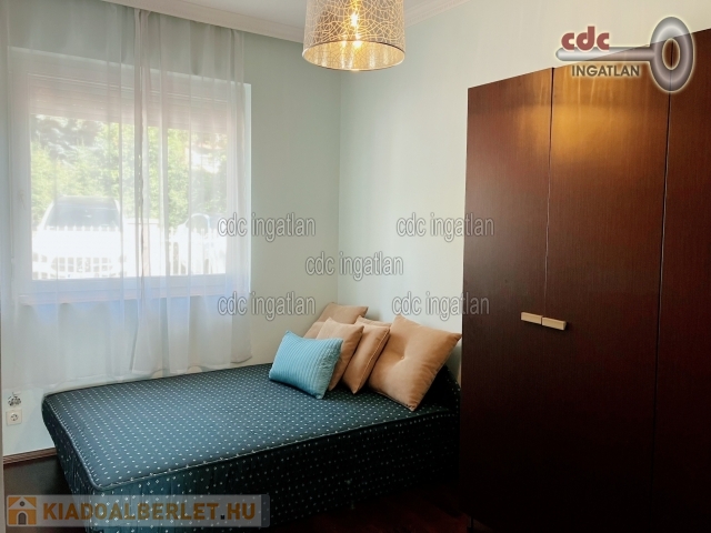 II. kerületben, Csatárka és Pálvölgy határában egy kisforgalmú, csendes utcában kiadó egy kis lakóközösségű társasház első emeleti lakása. Luxus minőségben felújított, világos, jó hangulatú, minőségi konyhával, ízlésesen berendezett. A 95 m2-es, nappali + 2 hálószobás, teraszos ingatlan rendkívül jó beosztású. A hálószobák külön nyílnak, az amerikai konyhás nappalihoz tartozik a 10 m2-es, kertre néző, panorámás terasz. A fürdőszobában kád és zuhanyzó is van, valamint egy wc és egy bidé. Közvetlen mellette van még egy wc kézmosóval. A lakás része még egy ablakos gardróbhelyiség is. Az ingatlan riasztóval ellátott, légkondícionált, fűtése cirkós, a nappali kandallós. A közös használatú kert folyamatosan gondozott, egy rendszeresen tisztított medencével is rendelkezik, melyet a lakók közösen használhatnak, csakúgy, mint a grillezőt. Parkolási lehetőség van a teremgarázsban, a kertben van egy kocsibeálló és még egy a ház előtt is. Az ingatlan minimum 1 évre kiadó, 2 havi kaució szükséges. A rezsi fogyasztás alapján fizetendő, a közös költség 100 Euro. Kisállatot nem lehet hozni, a dohányzás tilos az ingatlanban.