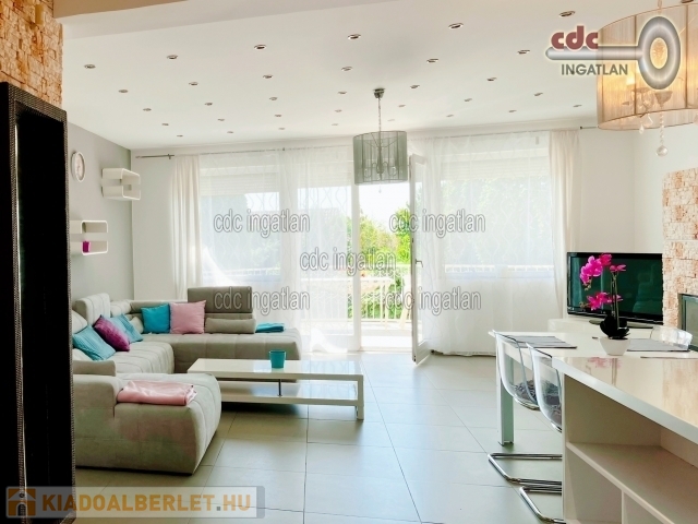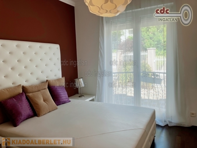 II. kerületben, Csatárka és Pálvölgy határában egy kisforgalmú, csendes utcában kiadó egy kis lakóközösségű társasház első emeleti lakása. Luxus minőségben felújított, világos, jó hangulatú, minőségi konyhával, ízlésesen berendezett. A 95 m2-es, nappali + 2 hálószobás, teraszos ingatlan rendkívül jó beosztású. A hálószobák külön nyílnak, az amerikai konyhás nappalihoz tartozik a 10 m2-es, kertre néző, panorámás terasz. A fürdőszobában kád és zuhanyzó is van, valamint egy wc és egy bidé. Közvetlen mellette van még egy wc kézmosóval. A lakás része még egy ablakos gardróbhelyiség is. Az ingatlan riasztóval ellátott, légkondícionált, fűtése cirkós, a nappali kandallós. A közös használatú kert folyamatosan gondozott, egy rendszeresen tisztított medencével is rendelkezik, melyet a lakók közösen használhatnak, csakúgy, mint a grillezőt. Parkolási lehetőség van a teremgarázsban, a kertben van egy kocsibeálló és még egy a ház előtt is. Az ingatlan minimum 1 évre kiadó, 2 havi kaució szükséges. A rezsi fogyasztás alapján fizetendő, a közös költség 100 Euro. Kisállatot nem lehet hozni, a dohányzás tilos az ingatlanban.