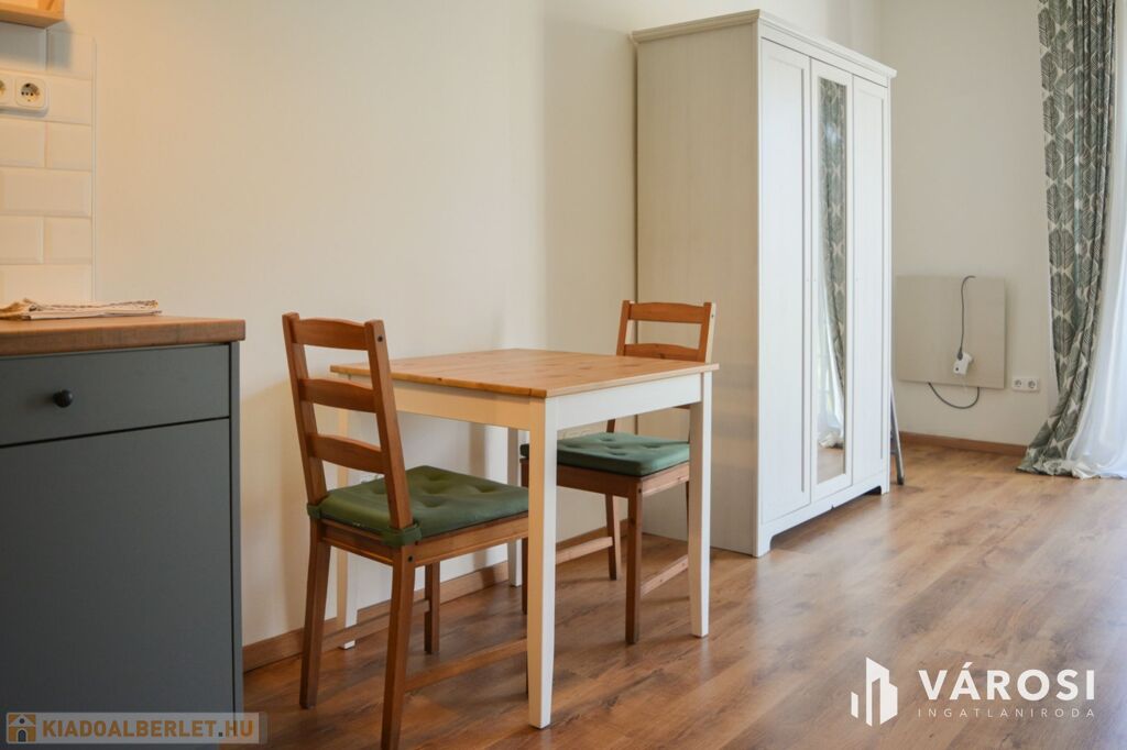 Az újszerűen felújított, és fiatalos bútorokkal rendelkező lakás egy tágas, amerikai konyhás szobából, előszobából és a kádas fürdőszobából áll.