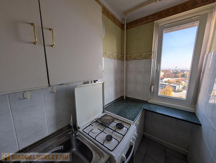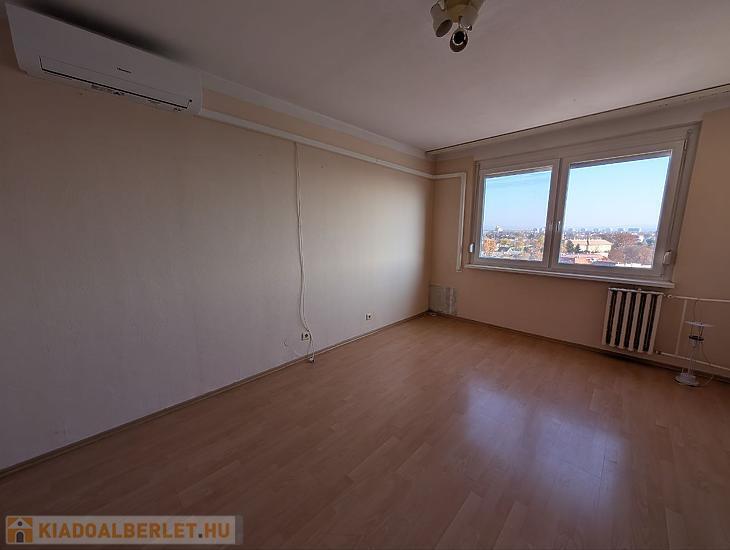 Azonnal költözhető, klímás, közeps állapotú, bútorozatlan a 9. emeleten elhelyezkedő, alacsony rezsis 34 nm-es, kis lakás kiadó szép kilátással.