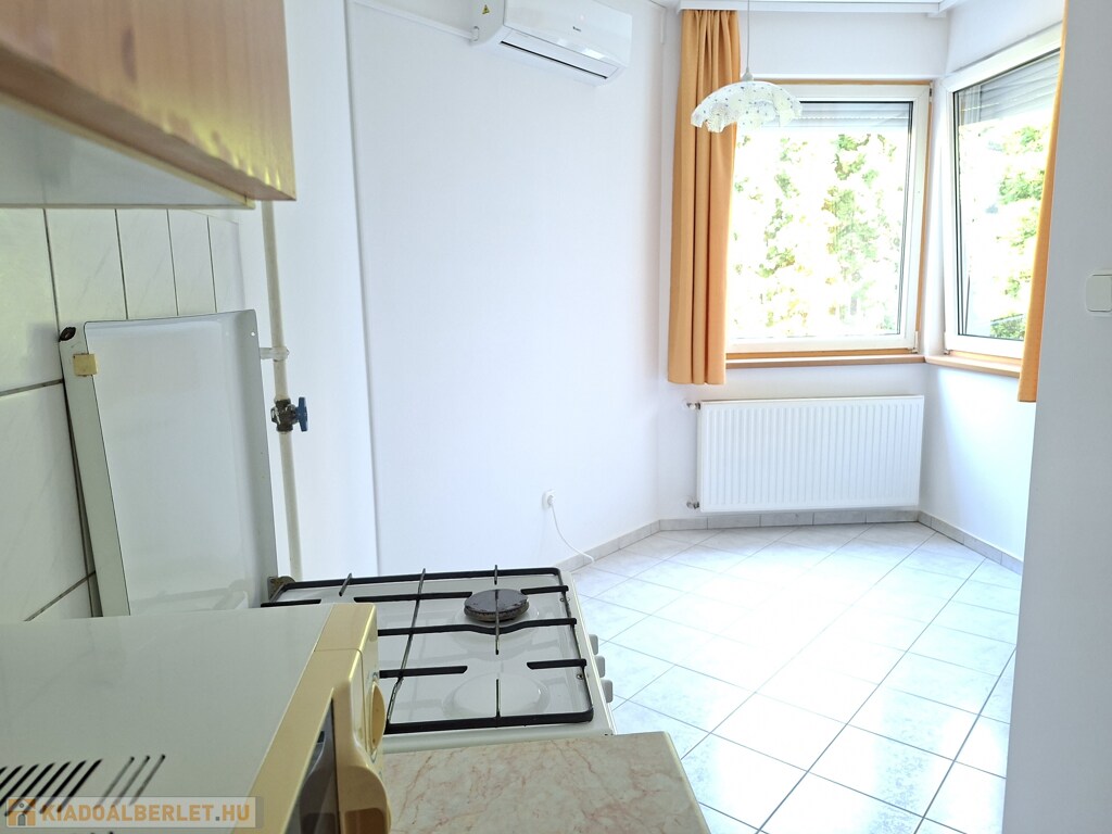 Kellemesen tágas, egy szobás földszinti lakás kiadó Újpest-központban.
