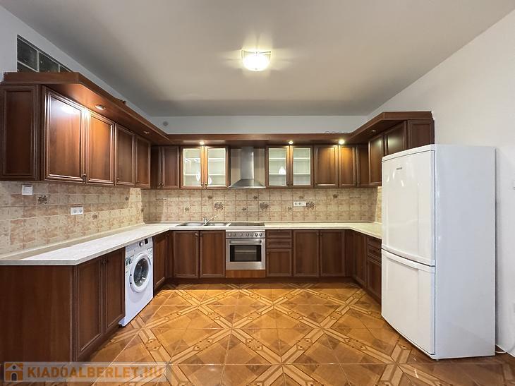 Nem bútorozott, de gépesített: beépített sütő és főzőlap, valamint a hűtő és mosógép.