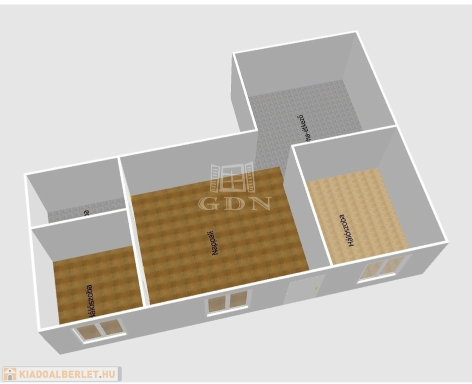 Közös helyiségek: nappali, étkező, konyha, fürdőszoba