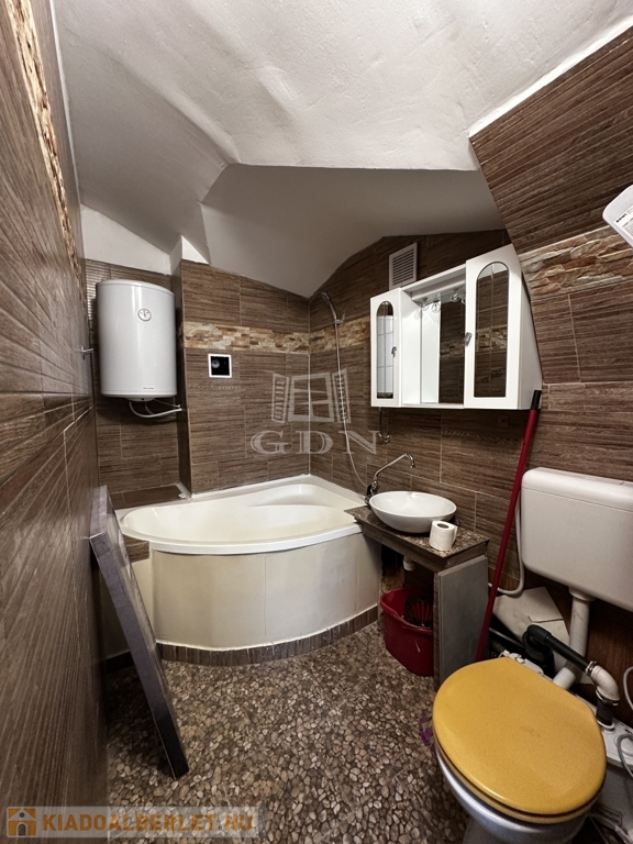 Fürdőszoba: sarokkád, törölközőszárítós radiátor, WC, villanybojler