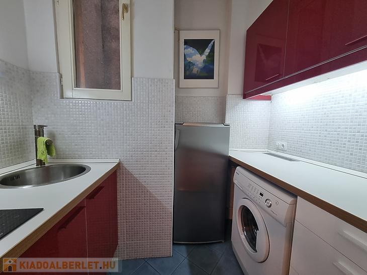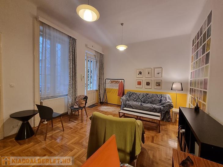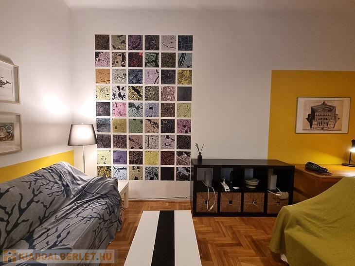 Kiadó tavaszig, kb. 6 hónapra egy világos, 2. emeleti, 38 m²-es, teljesen bútorozott és gépesített lakás Budapest szívében, az V. kerületben, a Vitkovics Mihály utcában.