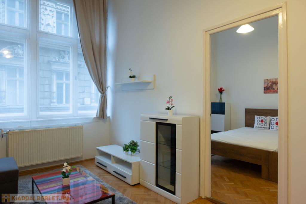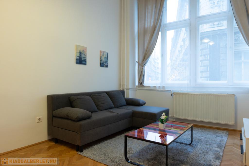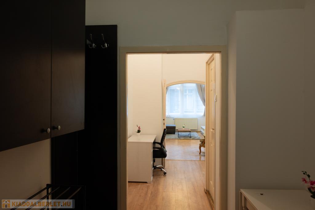 2 szobás (külön és egybe nyíló), 1. emeleti lakás a Váci utca régi, patinás részén hosszú távra kiadó.