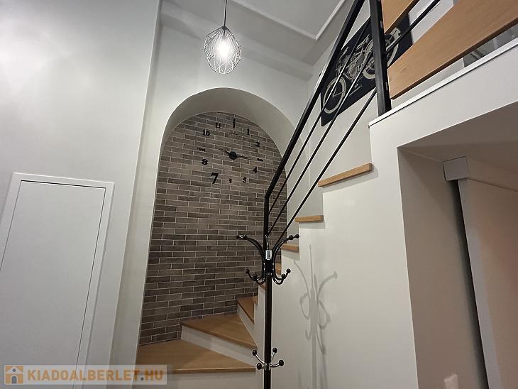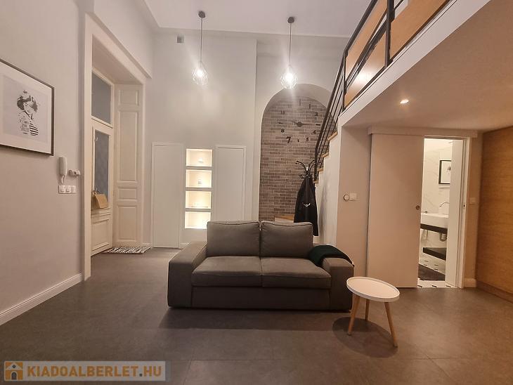 Kiadó egy elegánsan és igényesen felújított, tágas, gépesített lakás a Károly körút 26. szám alatt, Budapest egyik legkeresettebb, pezsgő belvárosi részén. Az ingatlan amerikai konyhás nappalival rendelkezik, amely világos és jól berendezhető életteret biztosít, a galéria pedig külön hangulatot és plusz funkciót ad a lakásnak. A hálószoba teljesen külön nyílik, csendes és kényelmes, és egy saját, elkülönített gardróbhelyiség is kapcsolódik hozzá, ami nagyban megkönnyíti a praktikus tárolást. A lakás minden részlete gondosan átgondolt, modern és stílusos kialakítást kapott, amely kellemes és otthonos légkört teremt.