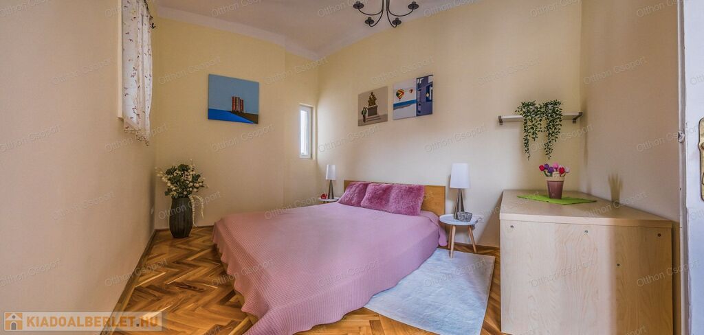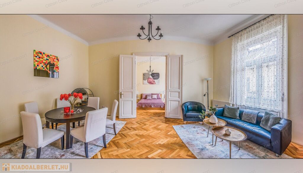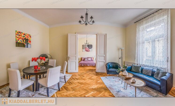 KISÁLLATTAL IS KÖLTÖZHETŐ, 88 négyzetméteres, nappali plusz 2 hálószobás, elegáns lakás kkiadó a Hercegprímás utcában, közvetlen a Bazilika közelében. Az ingatlan a társasház 4.emeletén található, lift van. Az ablakok a csendes, belső udvarra nézne. A fűtést gázkazán biztosítja, a lakás klimatizált.