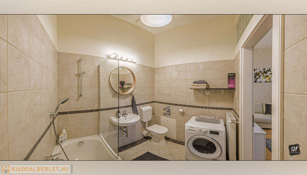 •Extra kényelmi opciók: mosó-szárító gép, tágas fürdő kádas kialakítással, valamint nagy tévé.